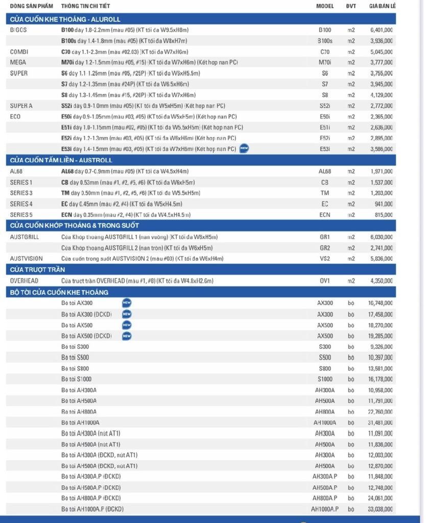 Cửa cuốn khớp thoáng AUSTGRIL 2025