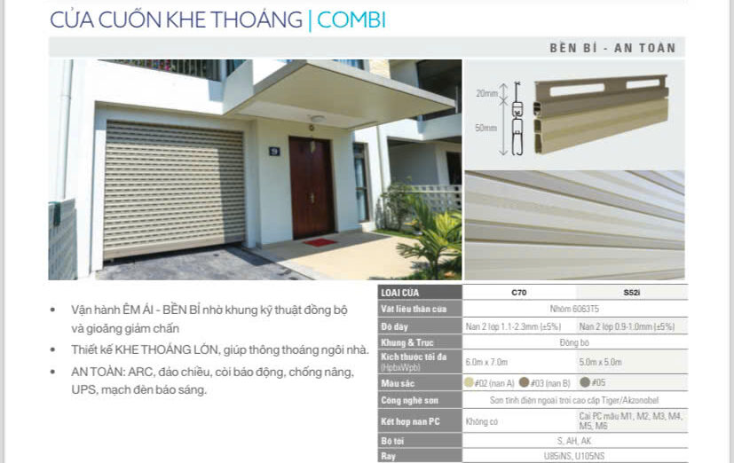Cửa cuốn Combi C70 là dòng cửa cuốn khe thoáng truyền thống của thương hiệu Austdoor đã có mặt trên thị trường trong nhiều năm qua. Đây cũng được xem là một trong những mẫu cửa cuốn khe thoáng cao cấp được ứng dụng cho các loại nhà ở dân dụng, nhà ở cao cấp nhiều nhất hiện nay.